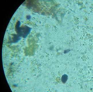крапельки та кристали жирних кислот і нерозчинних мил;